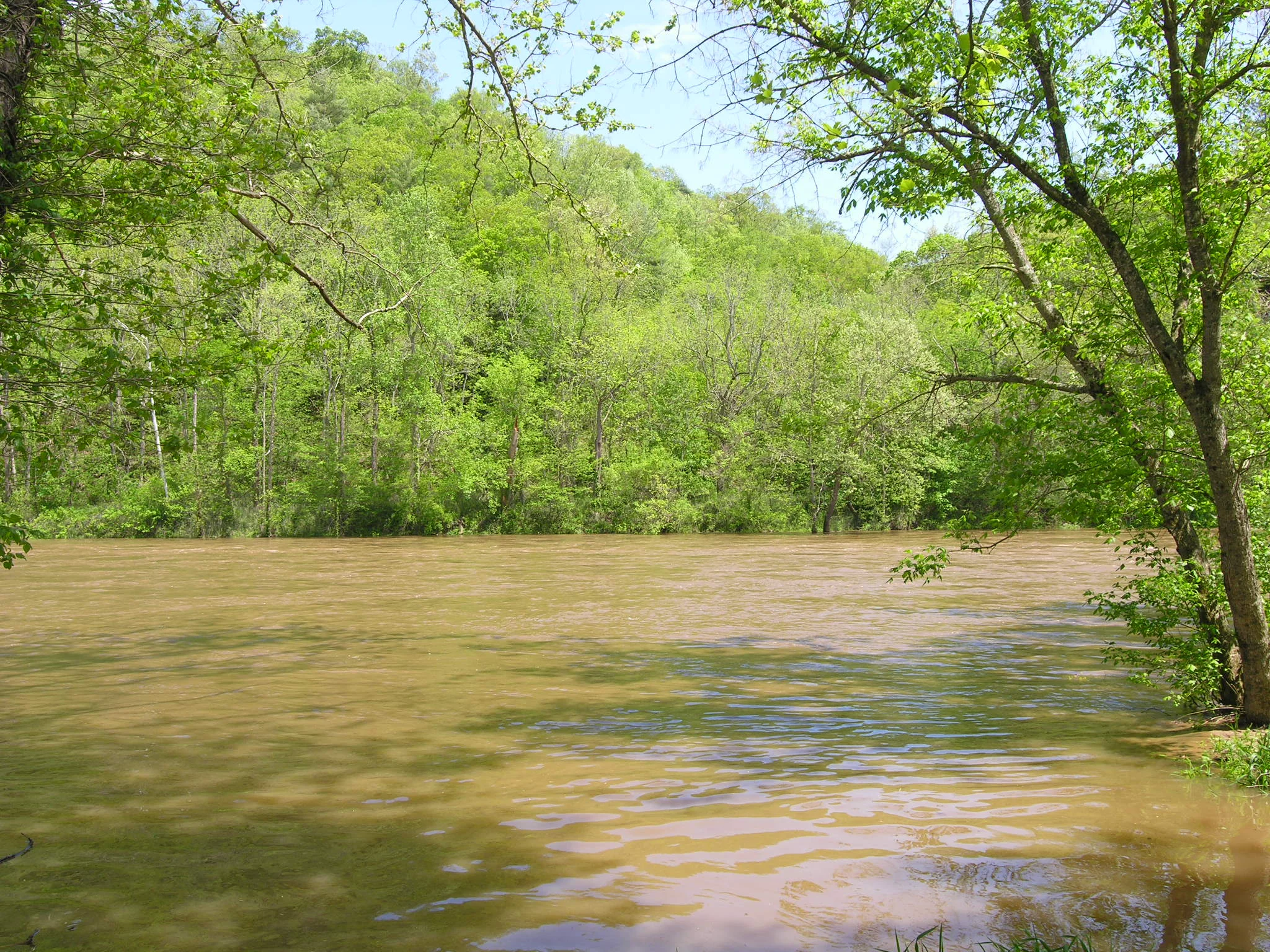 DIRECTIONS: I-81 Exit 80. Take 52S. Left onto Major Grahams Road for 2.4 miles. (You will pass under the interstate and climb in elevation to the top of the hill.) Right onto Beetle Spinner. Beetle Spinner becomes River Hills Drive. Once in River Hills, stay straight on River Hills Drive until it ends at the intersection of Waterview Drive and River Ridge Drive. Turn Left onto Waterview. Follow to the end. Look to the right and see sign at entrance to the access road that leads to the river bottom.
